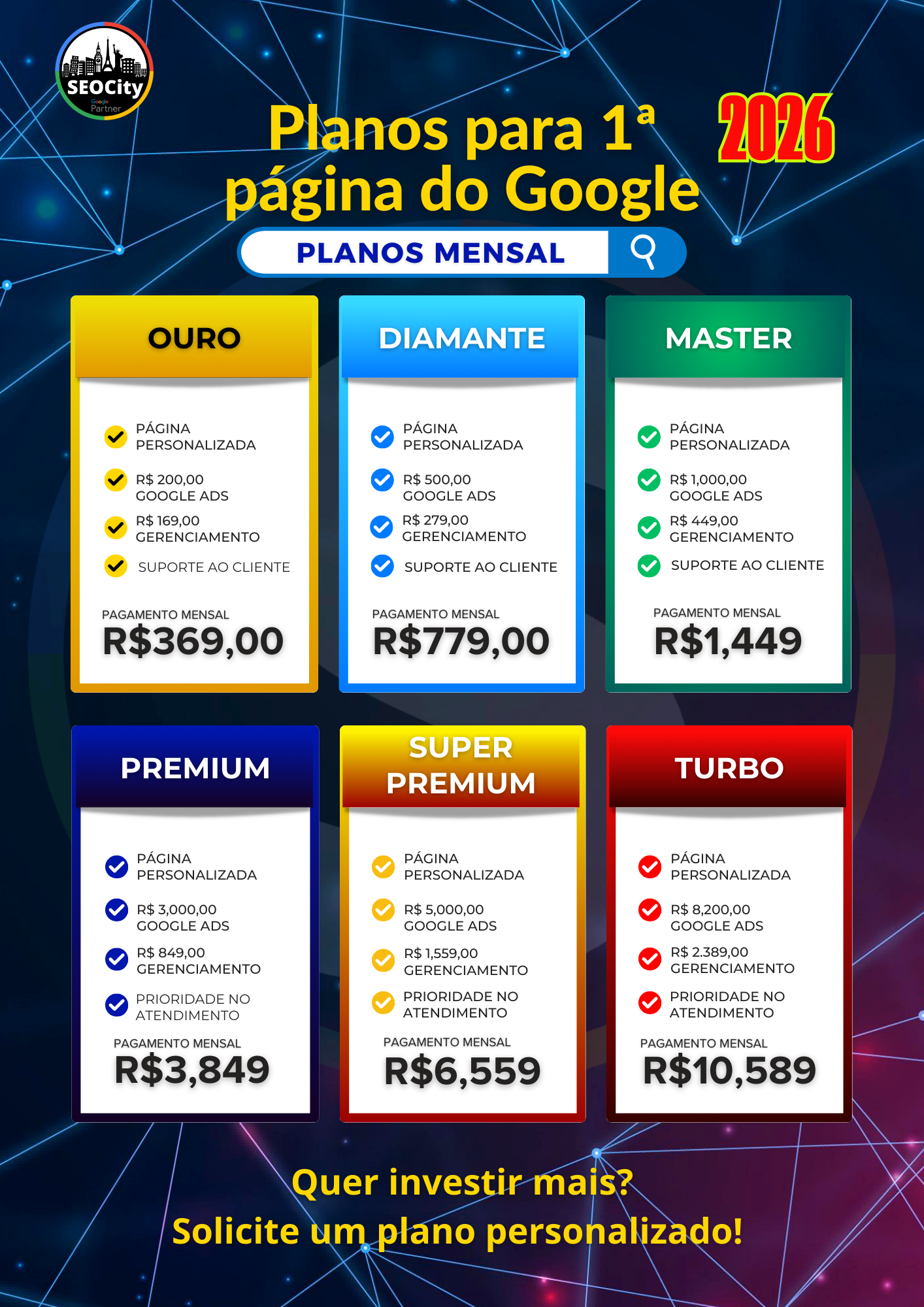 Receba relatórios mensalmente com o número de visitas, gastos e o número de contatos contabilizados.
